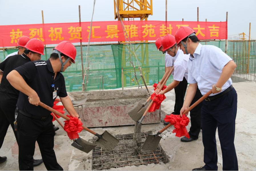 7月4日上午,伴随着最后一方混凝土的浇筑到位,在业主方、监理方、项目部人员及河南分公司领导的见证下,许昌汇景雅苑1#、2#、3#、5#、6#迎来了具有特殊意义的历史时刻——项目主体工程全部封顶。