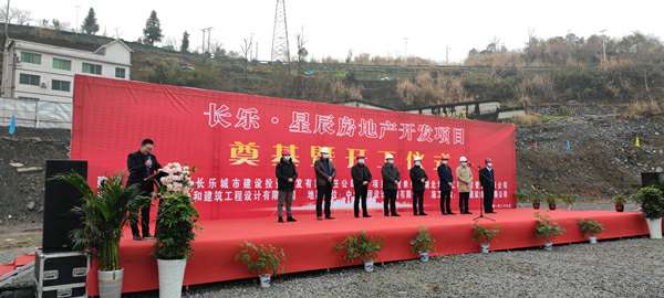 2021年1月26日上午,由九游j9官方登录入口-九游j9(中国)承建的长乐▪星辰住宅项目奠基暨开工仪式在项目现场热烈举行。湖北省宜昌市五峰土家族自治县住房和城乡建设局副局长陈白华、县质量安全监督站站长邓简涛、九游j9官方登录入口-九游j9(中国)五峰长乐▪星辰项目经理王国云,项目参建各方及新闻媒体共40余人出席。宜昌市长乐城市建设投资开发有限责任公司总经理刘鹏主持。
